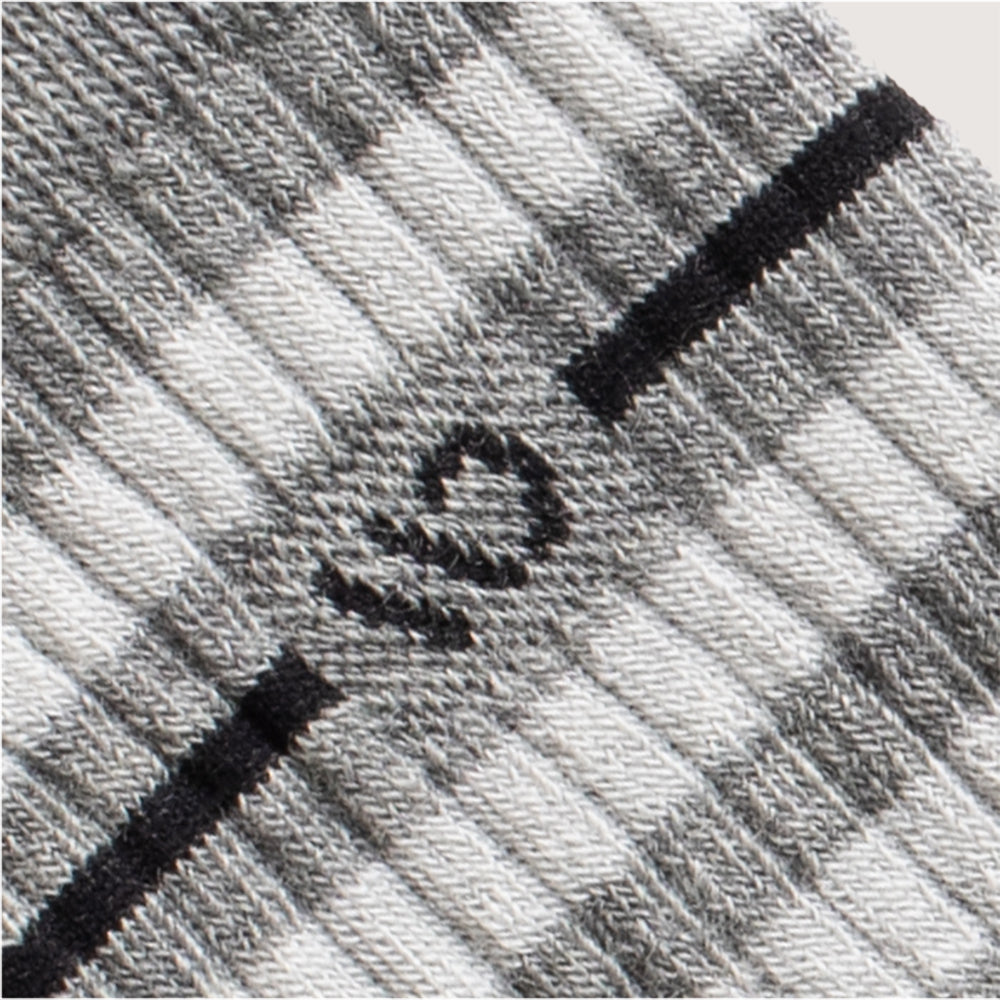 Flat socks, featuring white logo, with black body, and gray stripes below the cuff --Black