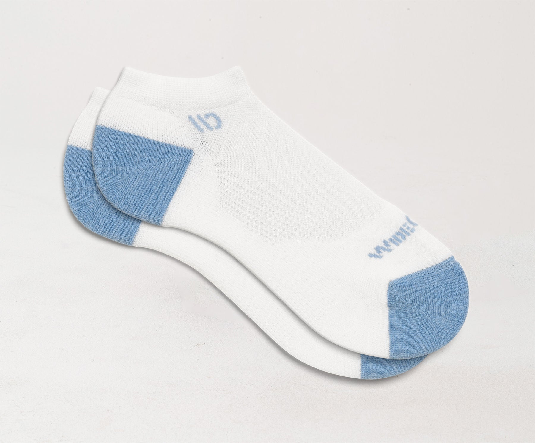 On model: No Shows with blue heel/toe and logo, with white body--White